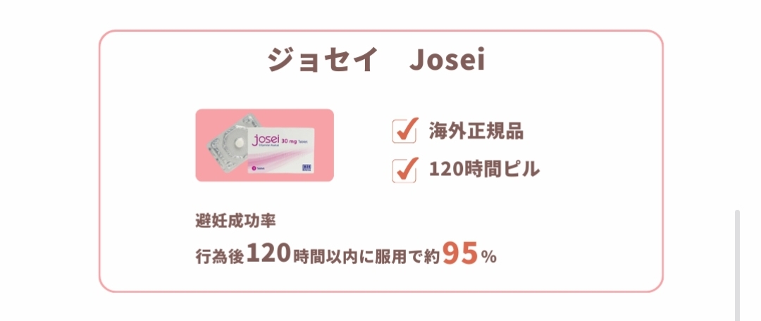 パーソナルケアクリニックでは、120時間対応アフターピルとして海外正規品のジョセイを取り扱っています。LINEで最短5分で診療から処方まで完結するので、今すぐこちらから医師に相談してみましょう。