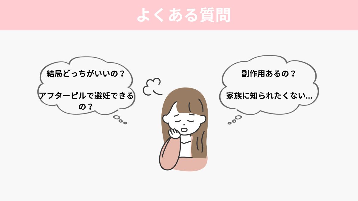 アフターピルを使用する際には、さまざまな疑問や不安が生じることが多いと思います。ここでは、アフターピルに関するよくある質問にお答えします。これらの情報を参考にして、より安心してアフターピルを使用できるようにしましょう。