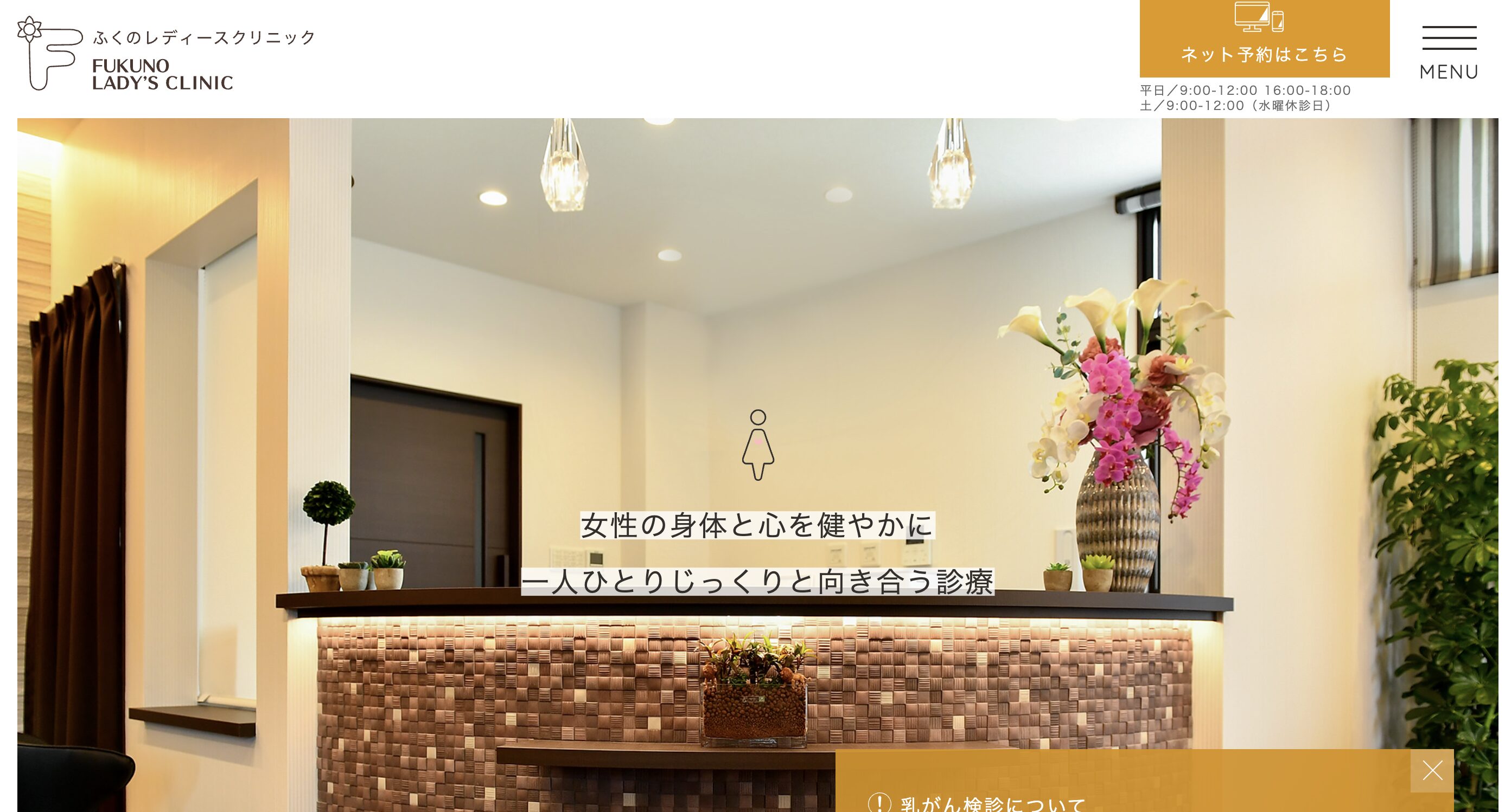 ふくのレディースクリニックは「まずはあなた自身」女性の健康を送れるように安心して相談できるような地域密着院です。