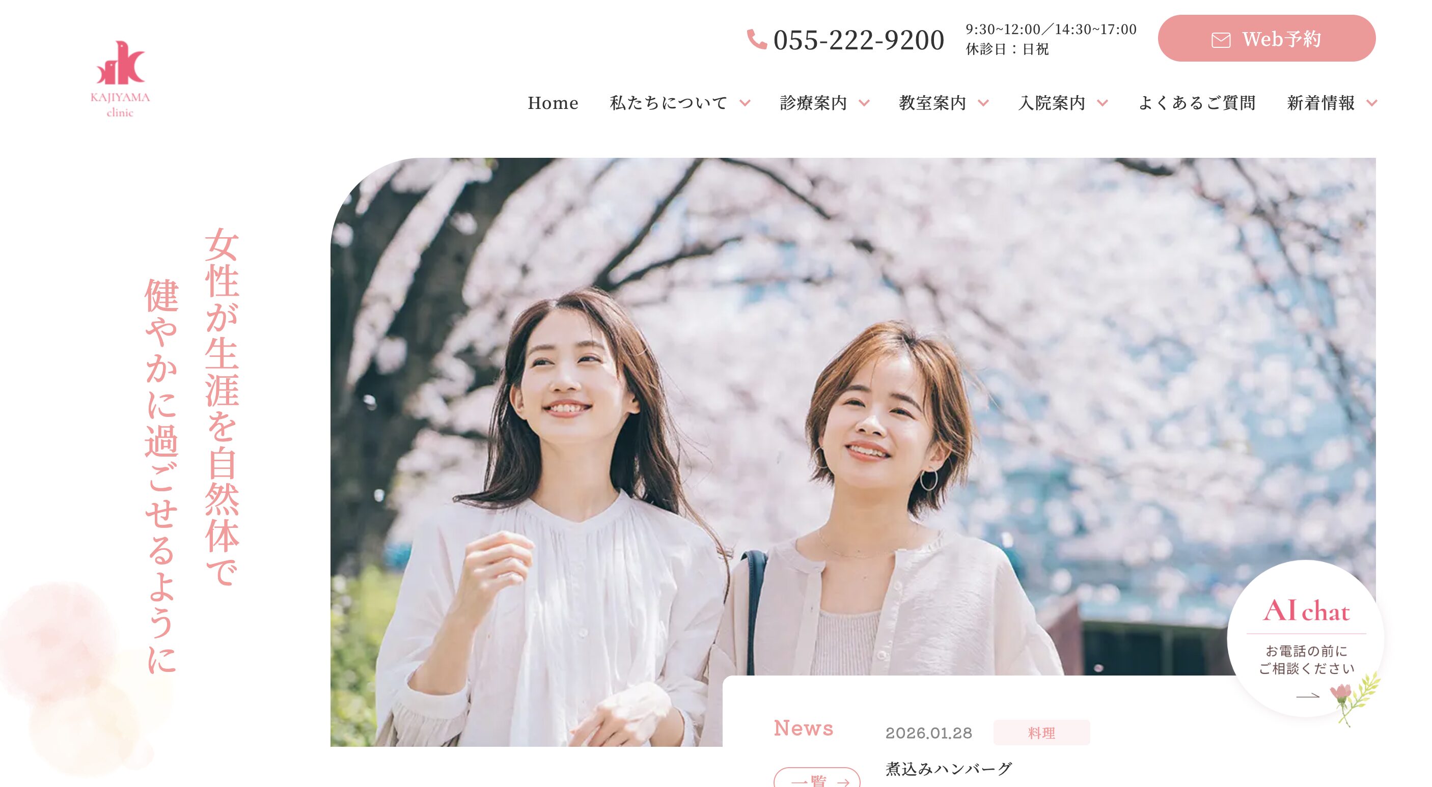 梶山クリニックは、家庭的な暖かい雰囲気の中で心も体も元気になるためのサポートをしています。安心と癒しを提供するクリニックとして、女性のからだの悩みを解決するクリニックです。