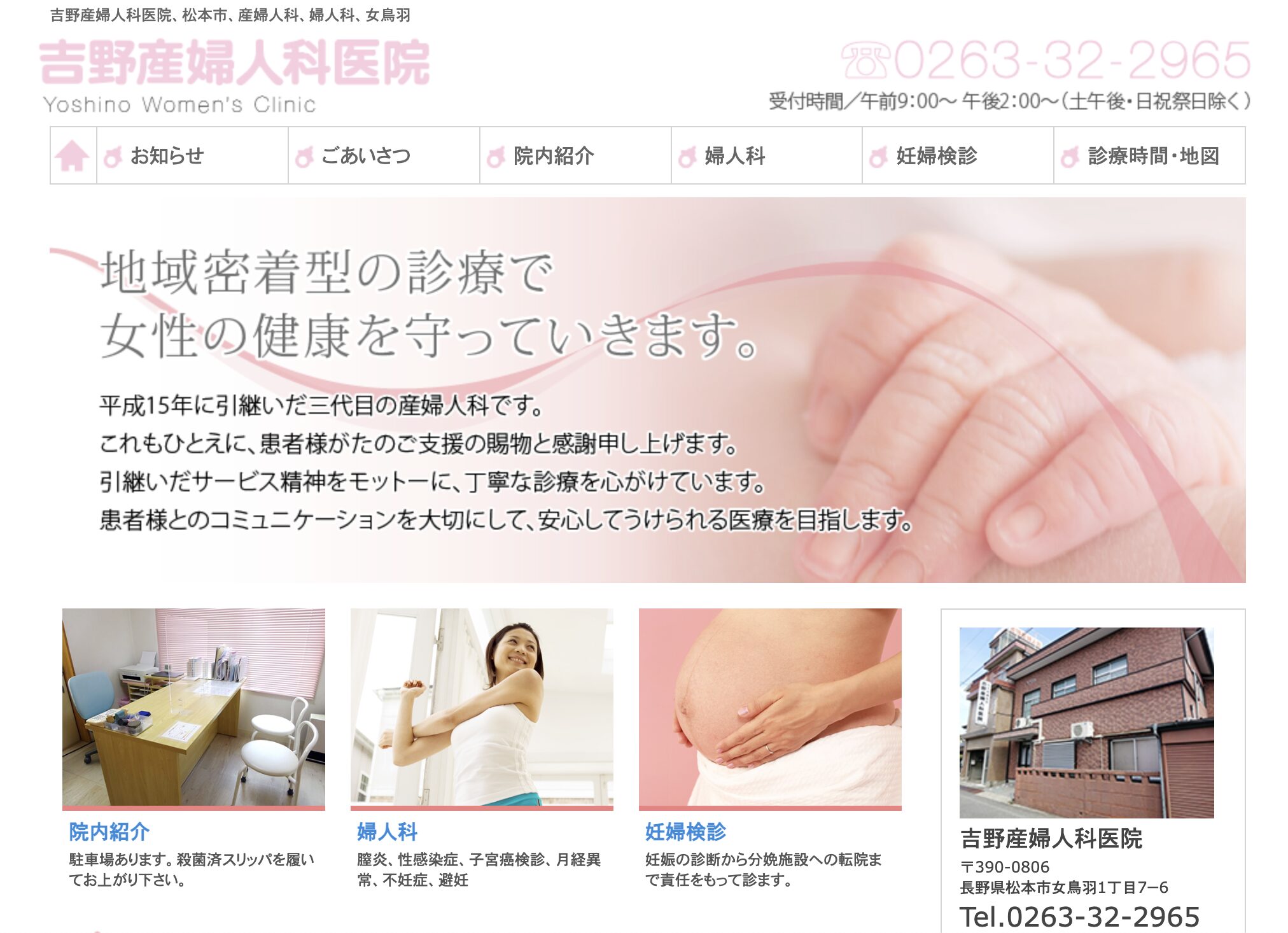 吉野産婦人科医院は3代にわたり松本市の医療を支えてきている、歴史ある婦人科院です。患者様一人一人に寄り添い、症状に合わせてわかりやすく説明をし、納得いくまでしっかりサポート致します。