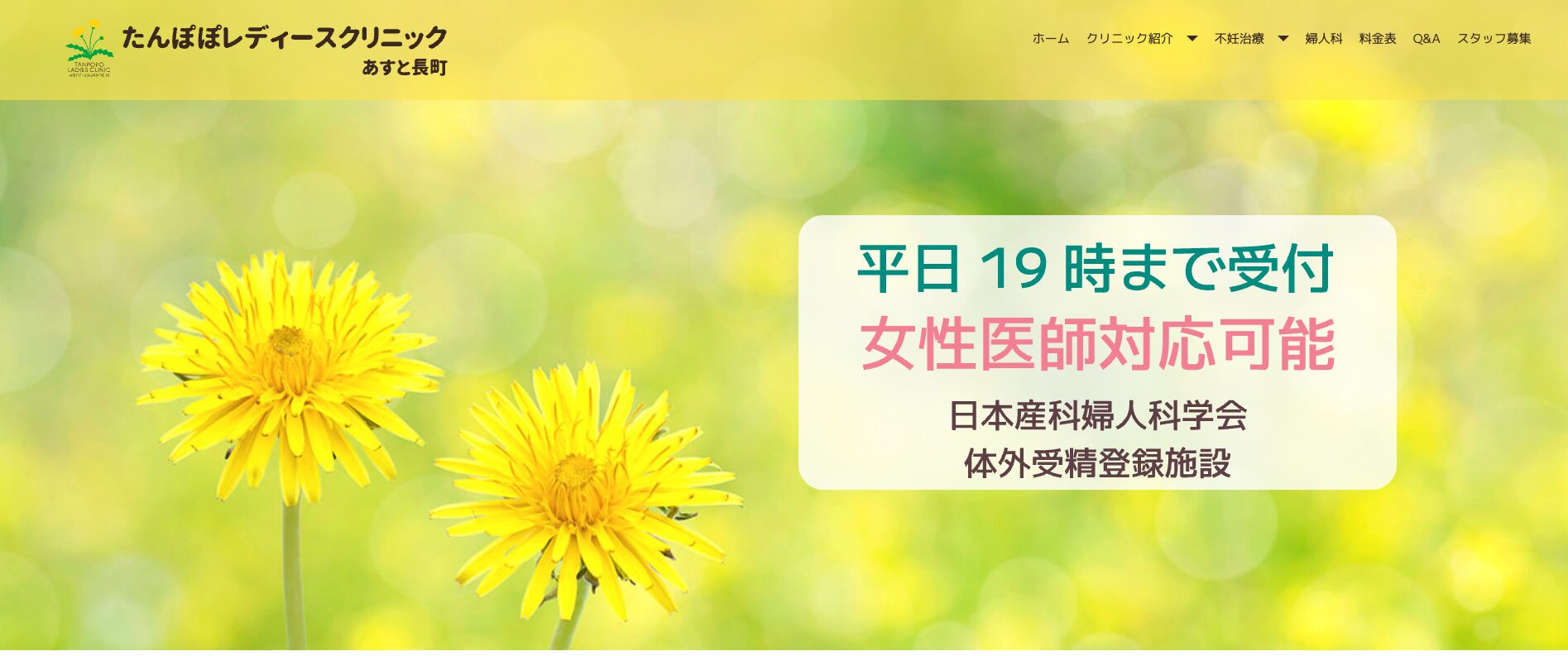 たんぽぽレディースクリニック|平日19時まで診療