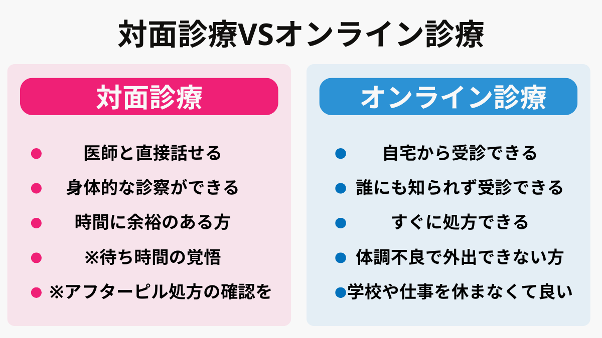 なるべく人に会わずにアフターピルを受け取りたい方には、オンラインクリニックがおすすめです。