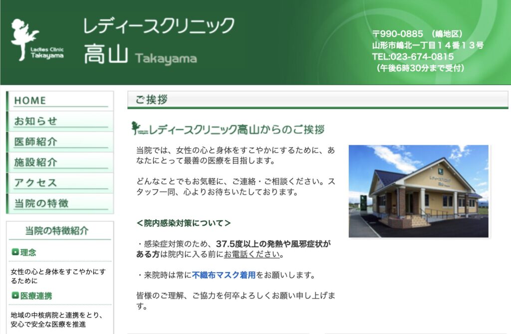 | 公式サイト | https://yamagata-fujinka.jp/ |